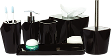Set includes: tissue box cover, soap dispenser, cotton jar, toothbrush holder, tray (customizable)